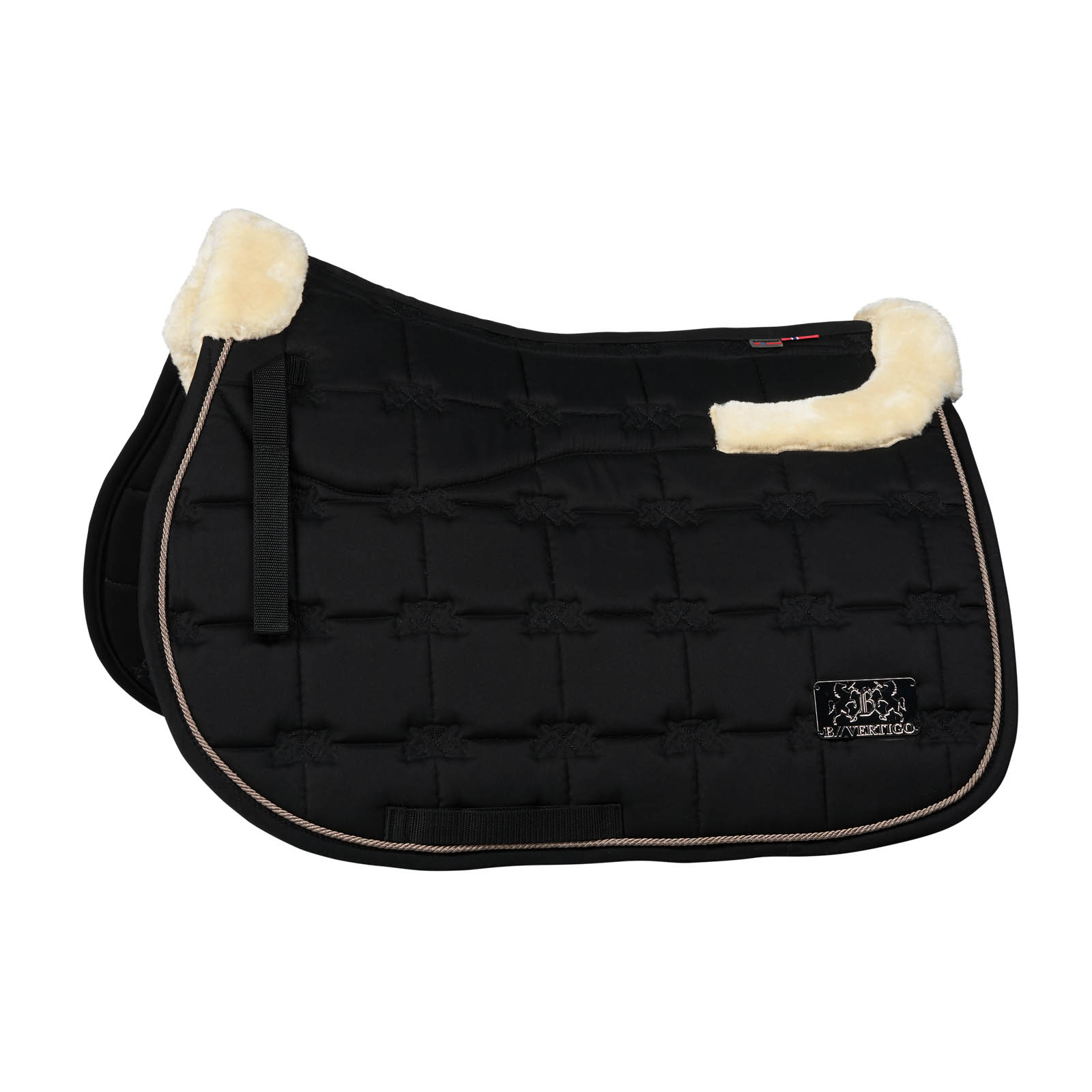 The B Vertigo Alaska all purpose saddle pad is designed with soft faux fur and a built-in pad. The trim is decorated with pretty cord piping. Quick-dry lining wicks away any moisture, and straps keep the saddle pad in place. The elegant logo quilting completes this look. Pair with Alaska ear net (#22908).