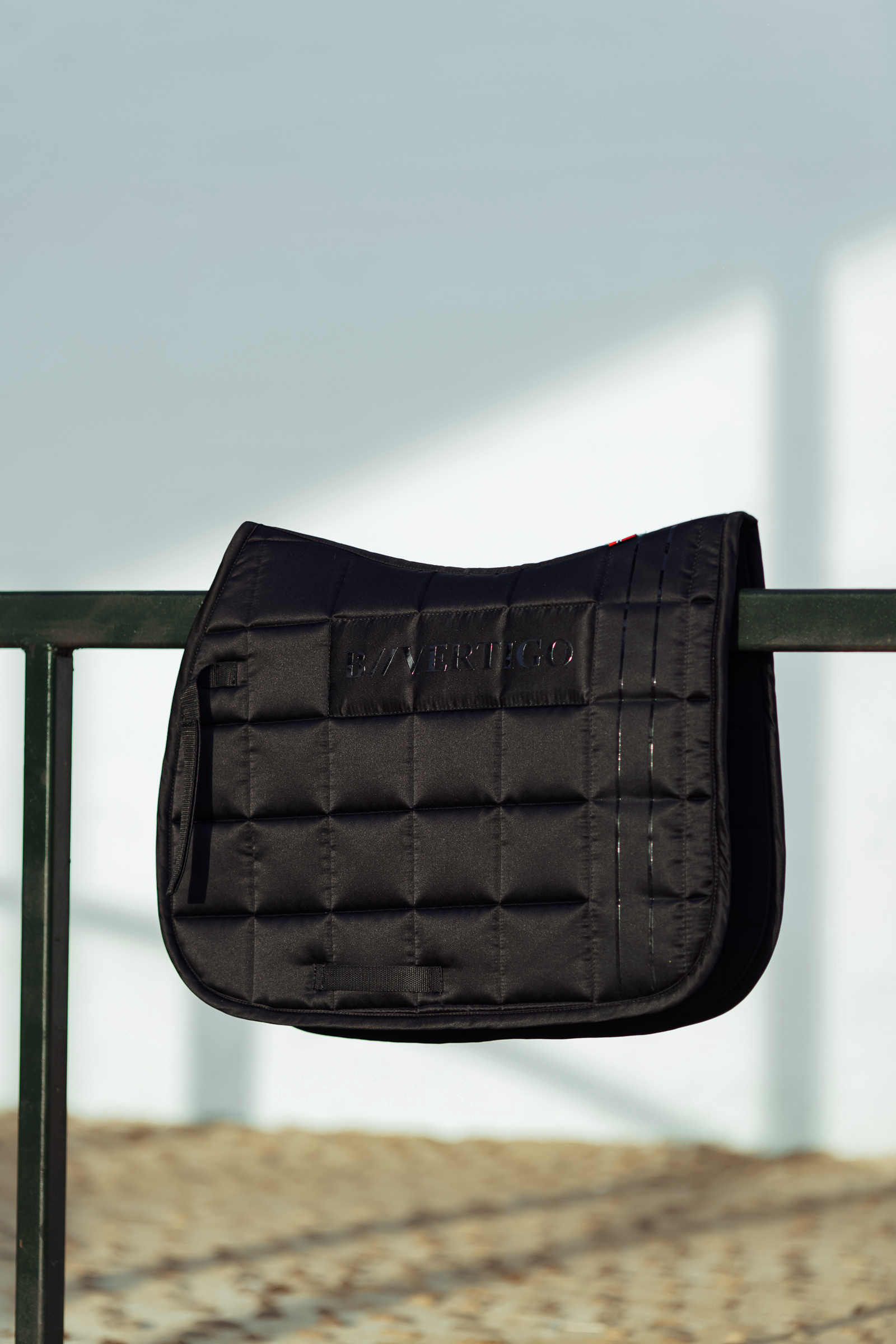 Our B Vertigo Drew saddle pad is made with quick-dry lining that is breathable and moisture wicking. Square quilting provides comfort beneath the saddle, and silicone stripes and logo add grip to keep the saddle in place. Muted colours are timeless, and easily match your tack. This saddle pad is also available in dressage cut. Combine it with our B Vertigo ear net and brushing boots for a full look!