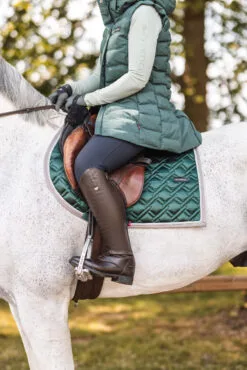This saddle pad features an anatomic shape, ensuring a perfect fit for your horse’s back. The anti-slip cushion helps to keep the saddle in place during movement. The large fence-like quilting adds a touch of elegance. With contrast piping and cords, this saddle pad stands out with its sophisticated design. The girth strap is adorned with logo embroidery, adding a subtle branding detail. Complete with a delicate B Vertigo logo on the left side, this saddle pad showcases attention to detail. Elevate your show jumping performance with the B Vertigo Evolve Jumping Saddle Pad.