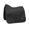 The B Vertigo Quinn saddle pad is made from high density material that perfectly cushions your movements. Quick-drying material wicks away any moisture. Rectangular quilting and three rows of cord around the edges make for a stunning look. The anatomically shaped spine brings a sporty touch. Pair this saddle pad with our B Vertigo Quinn ear net for a full look! Also available as all purpose version.
