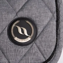 The new saddle pad in a lovely melange fabric, available in both brown and grey. Twisted and elegant cord around the edge and synthetic leather badge on the left side. Decorated with our wings-logo in brushed metal. Faux fur over the withers and equipped with “D” ring fixing straps. Great breathability and moisture management. Filling made out of high-quality polyfill and shock-absorbing foam.