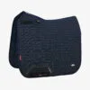 The Bucas Therapy jumping saddle pads are made of the high-quality Therapy material. This consists of an extremely fine stainless steel mesh that reflects the magnetic fields generated in the horse’s body. This process, in turn, stimulates blood flow to the muscles, causing them to heat up faster. However, the stainless steel mesh also slows down the cooling of the muscles, which prevents the formation of lactic acid. The saddle pad also features a high-quality, waffle-quilted backing material that is excellent at absorbing the horse’s sweat without compromising the Therapy material.