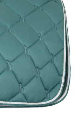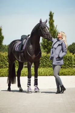 The Horze Ghent saddle pad features faux fur at the withers. Quick-dry lining keeps your horse comfortable. Rombe quilting and the braided trim make for an elegant look. Soft colours are easy to incorporate into your tack. Pair this saddle pad with our matching Horze Ghent brushing boots or bell boots and ear net. Also available as all purpose version.
