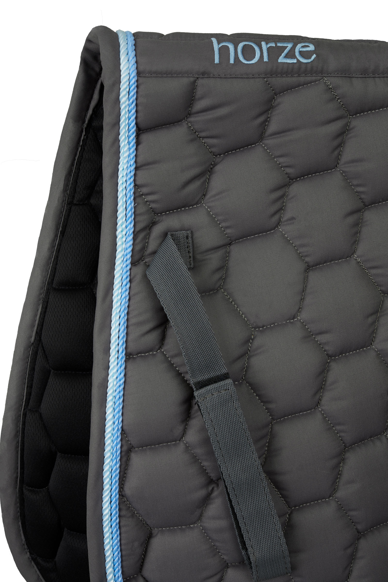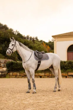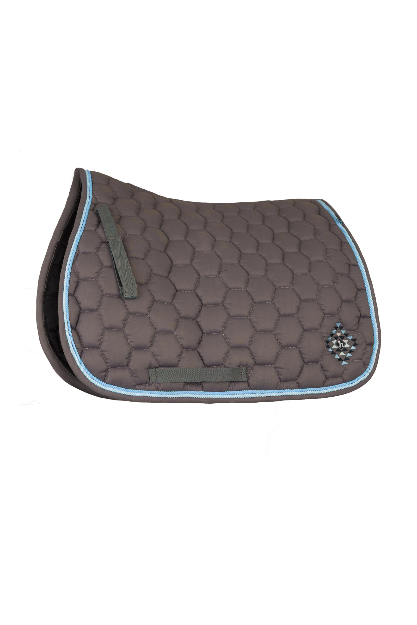 Our Horze Navajo saddle pad is designed with pretty honeycomb quilting. Quick-dry lining and anatomic spine keep your horse comfortable. Two rows of cord add an elegant touch to this saddle pad. The aztec embroidery in the corner is a gorgeous detail. Pair this saddle pad with the rest of our Horze Navajo range for a full outfit.