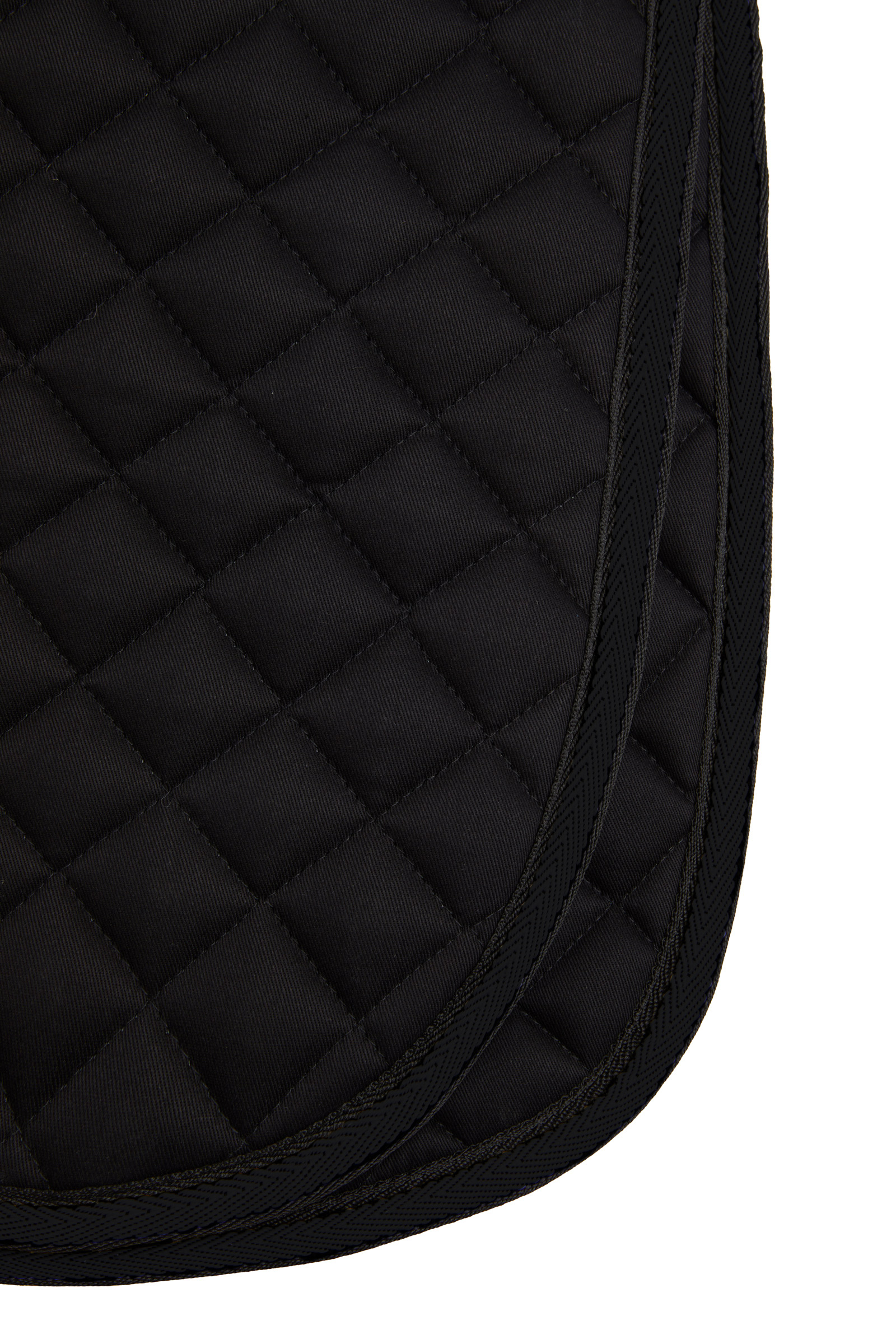 This lightweight, dressage saddle pad is functional with a simple, clean design. The contrasting piping adds a finishing touch to this quilted pad with diamond shaped design. Hook and loop fasteners as attachments at girth and billets keep the pad in place during any athletic activity. The padding has just enough fill for close contact with gentle support.