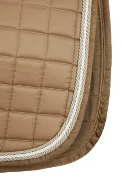 The edge of this all purpose saddle pad is trimmed with three rows of cord for a high-quality, sporty look. The high-cut withers add comfort and the moisture-wicking fabric keeps your horse dry and comfortable. The small square quilting adds a nice look while the foam-lined pad cushions your ride. Hook-and-loop fastener straps hold the saddle pad in place and a girth strap with the Horze emblem is stitched into place to keep your saddle from slipping.