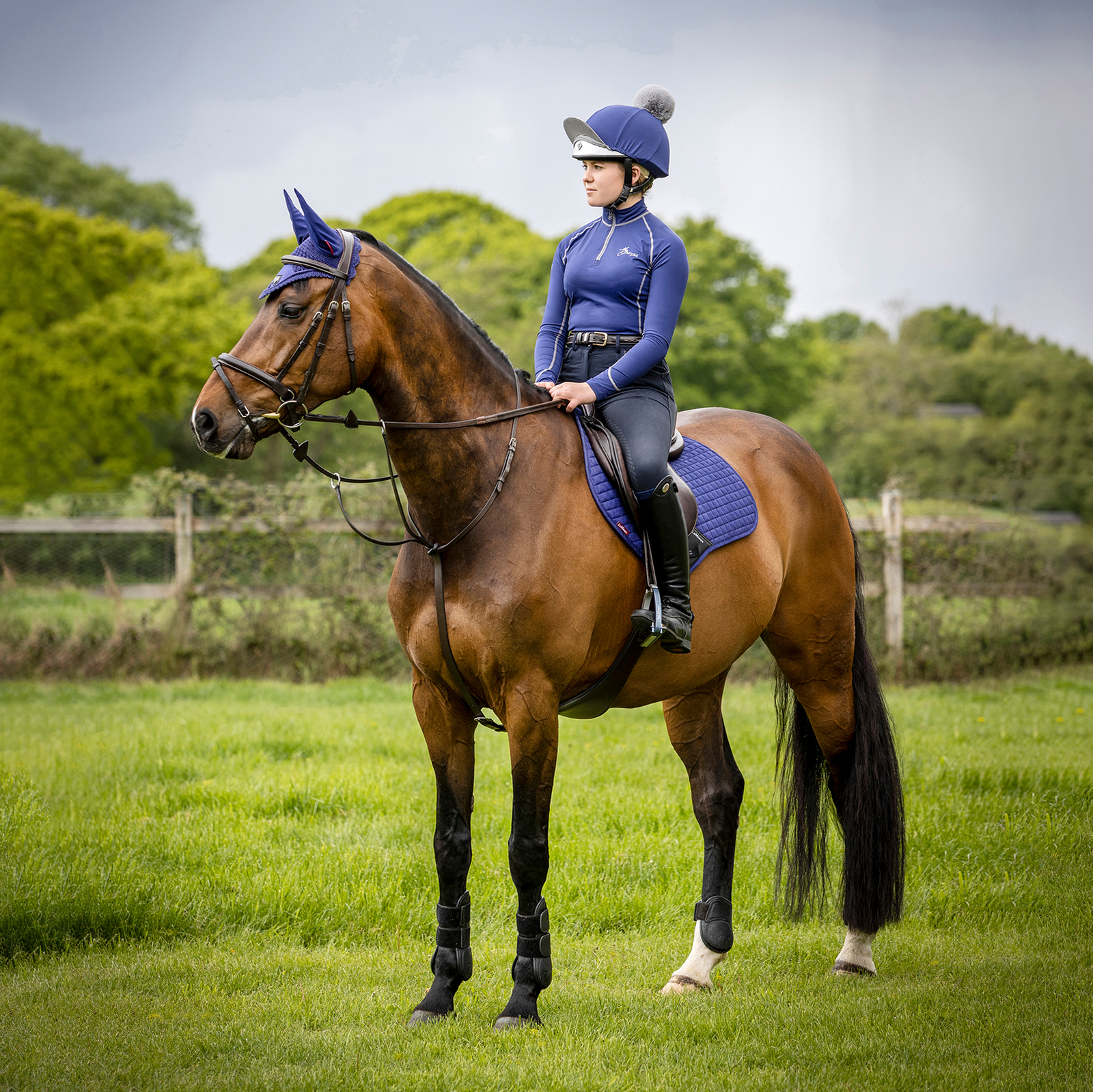 Now with a New Super Soft Suede Binding and New PU Leather Girth Protection area, the classic Close-Contact cut from LeMieux is designed to fit a wide range of more forward cut jumping saddles. Now one of the most iconic jumping pads with its high wither, elasticated D-Ring tabs and swept back profile . These saddle pads offer a very sleek and professional look to anyone’s saddle. The luxurious suede top side and new soft suede binding is complimented by super soft Bamboo lining which absorbs & controls sweat under the saddle and is beautifully comfortable and secure – minimising friction even on sensitive skinned horses. Girth keepers incorporate inner locking loops to offer more girthing options. There are several attractive colours with more new ones being added seasonally and a selection of new Small/Med pads to accommodate smaller saddles. Consider matching your Suede Close Contact pad with a Classic Fly Hood in the same colour.